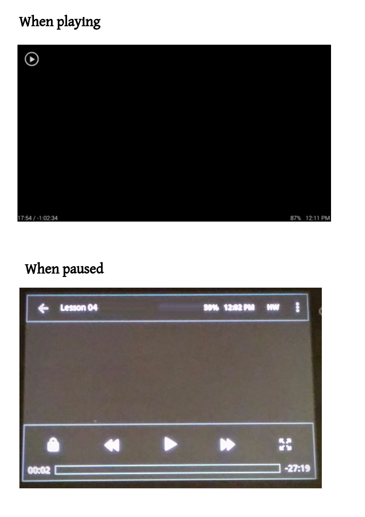 - The whole screen is the pause button, and then (when the controls appear) most of the screen is play button too, so my finger on the center of the screen will give me the pause/play functionality. This is very important specially when using the audio to learn languages (like for example the Pimsleur course).